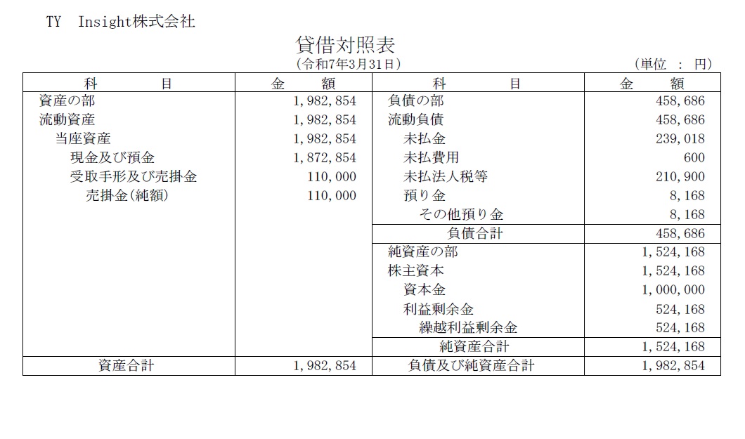 第1期貸借対照表を表示しています。